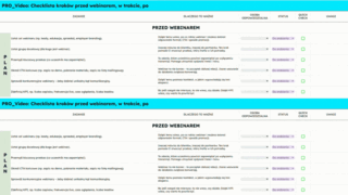 ✔️ Kompletną checklistę 100+ zadań podzielonych na etapy: planowanie, organizacja, promocja, dzień webinaru, follow-up.