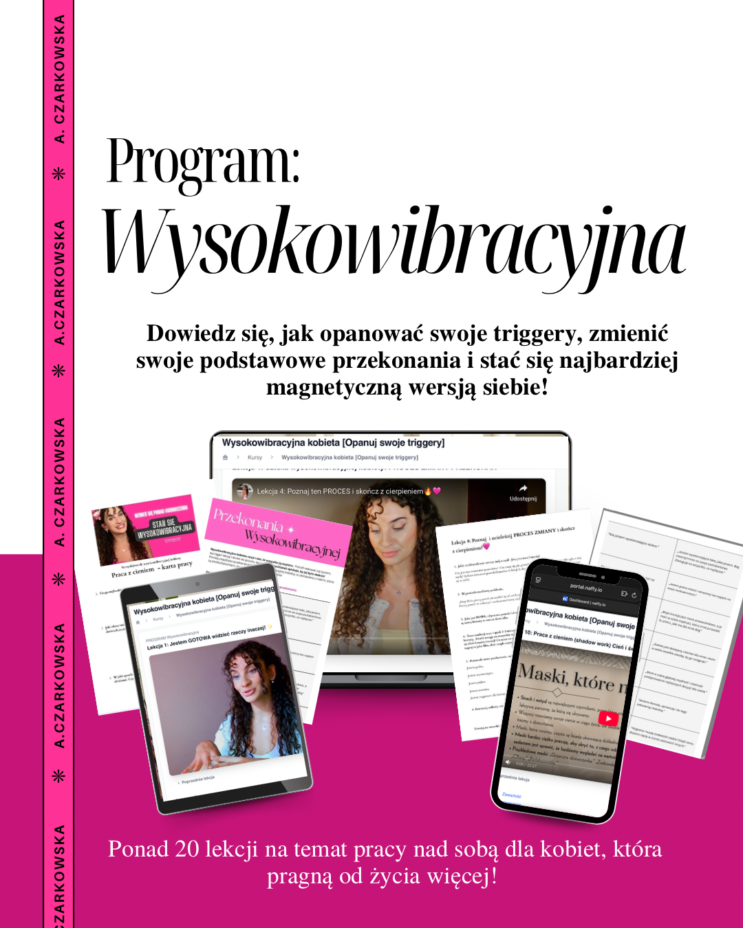 Program WYSOKOWIBRACYJNA to potężny portal pracy wewnętrznej, który pomoże Ci pokonać triggery, przezwyciężyć wątpliwości, zyskać pewność siebie i w końcu osiągnąć pełnię osobistej mocy!