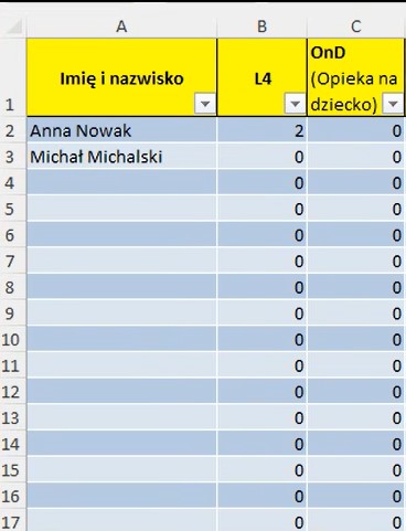 POMOCNIK KADROWY ROCZNY👨👩ARKUSZ EXCELA zliczający nieobecności pracowników w ciągu miesiąca i rocznym podsumowaniem130,00 zł -