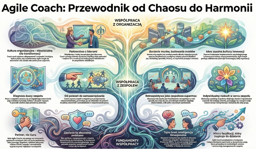 Ta książka to rewolucja w myśleniu o roli Agile Coacha. Wprowadza kluczowe pojęcie Coacha jako „Architekta Współpracy” – partnera, facylitatora i mentora, który buduje mosty tam, gdzie inni widzą mury.