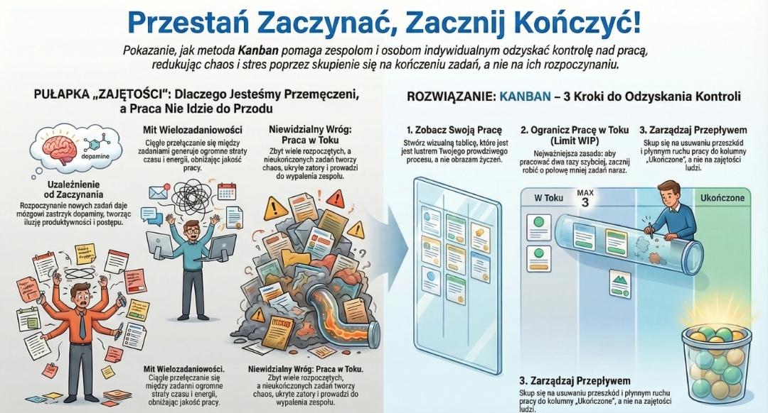 Wprowadzisz jedną, drobną zmianę (limit pracy w toku), która drastycznie przyspieszy kończenie zadań.