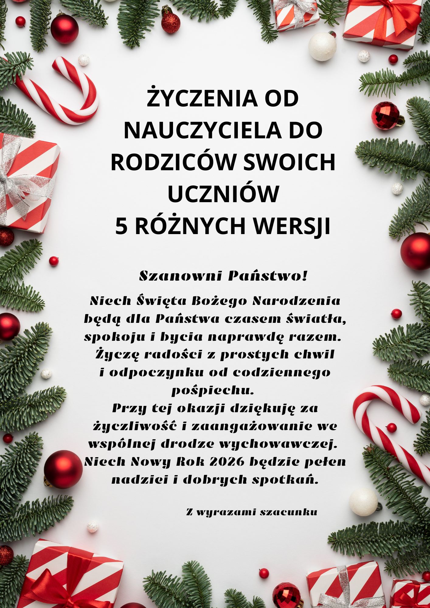 Życzenia dla rodziców uczniów na Boże Narodzenie5 wersji życzeń w PDF i Word do wysłania bądź wydrukowania dla rodziców uczniów6,00 zł -