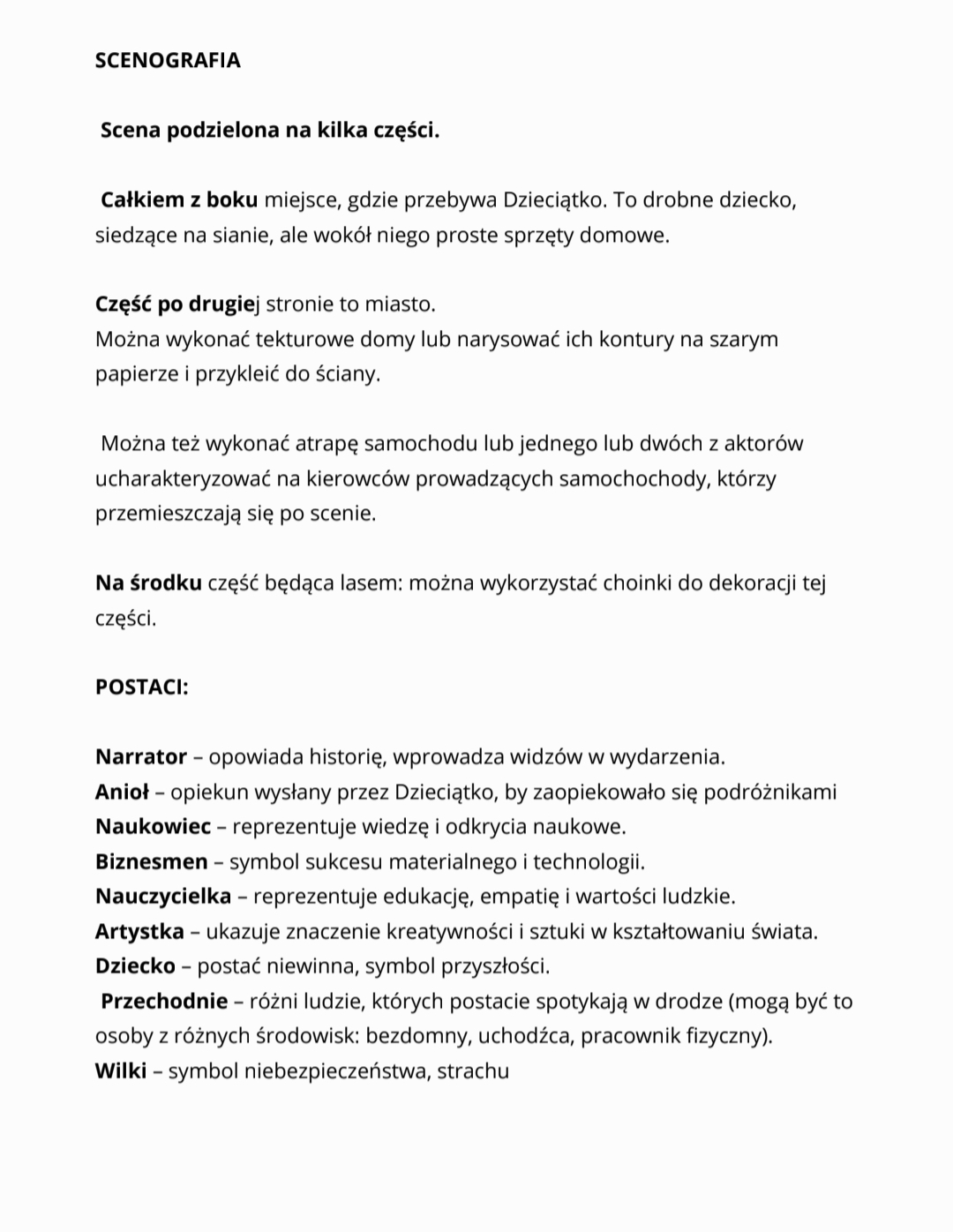 pomysły na scenografię i oprawę muzyczną,