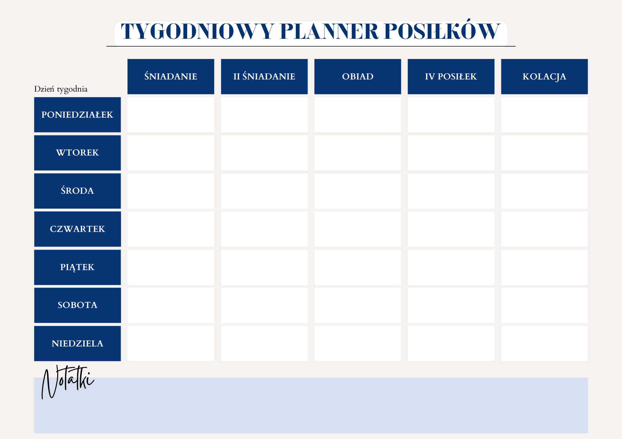 DarmowyKarta- Planer posiłkówNa tym planerze możesz zapisać cały twój plan posiłków na tydzień. -