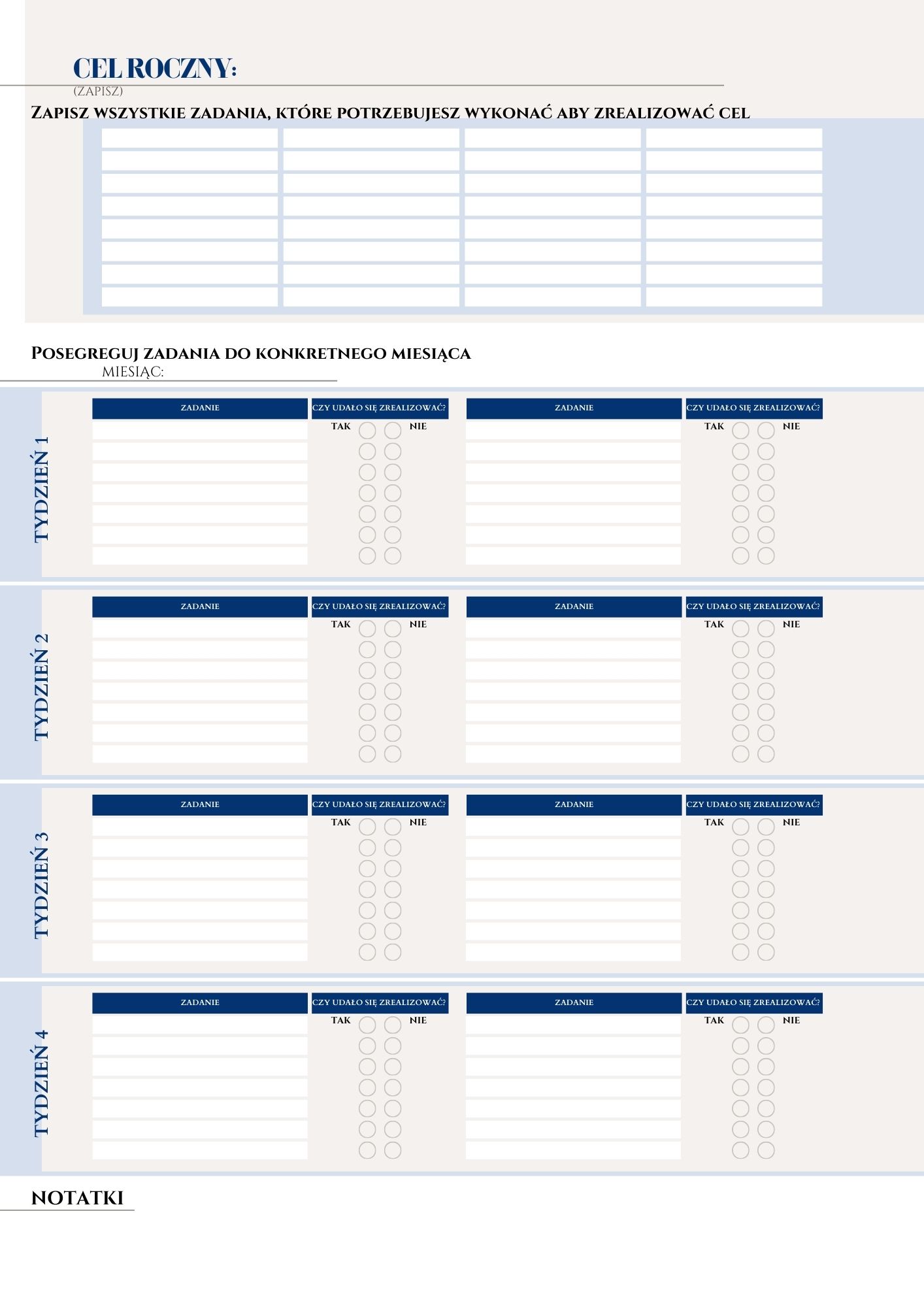DarmowyCel i zadania karta pracy -