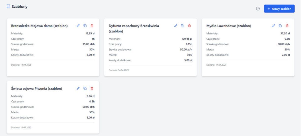Szablony kalkulacji