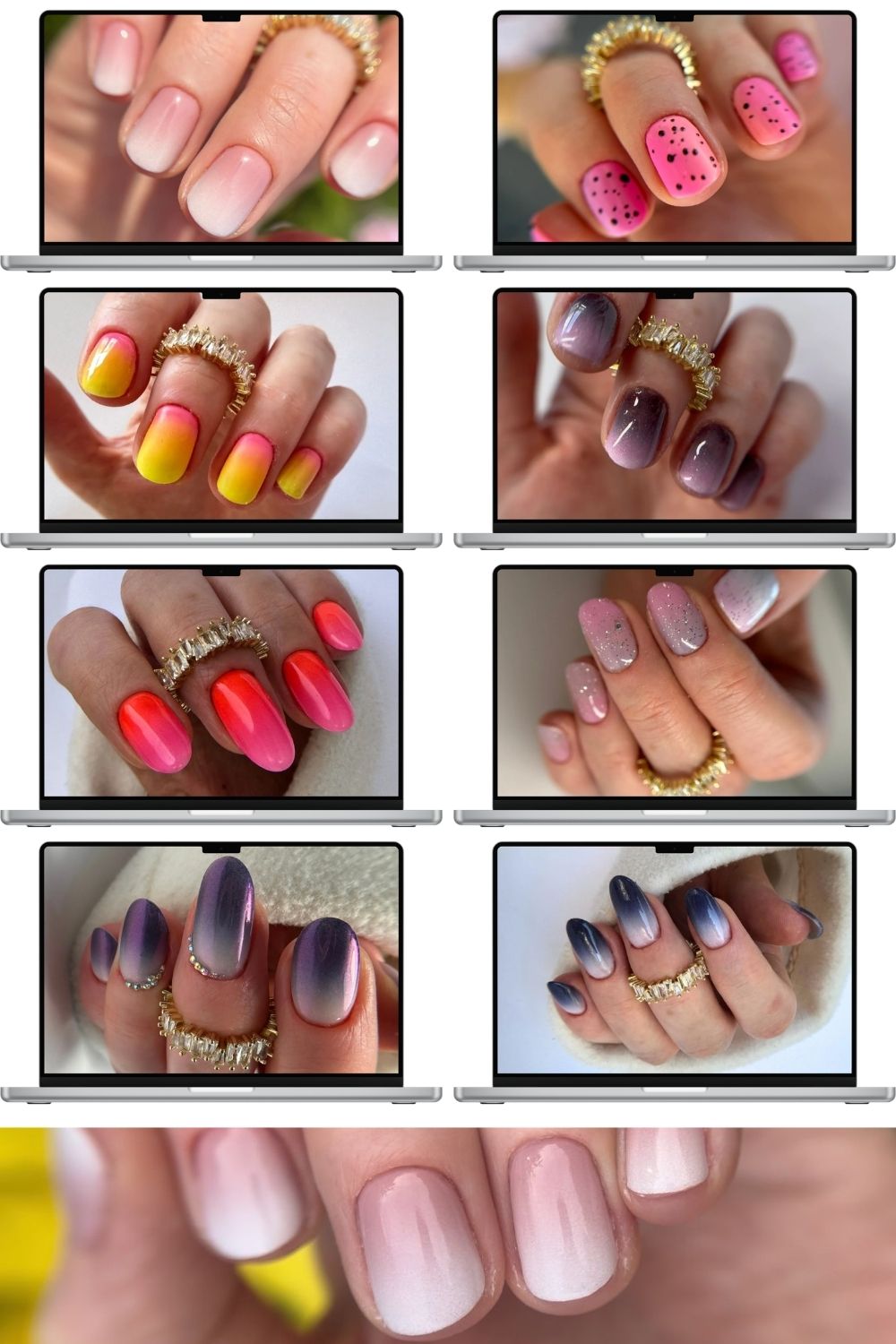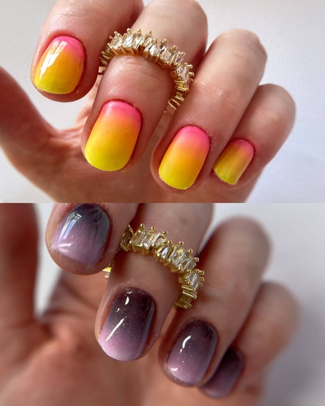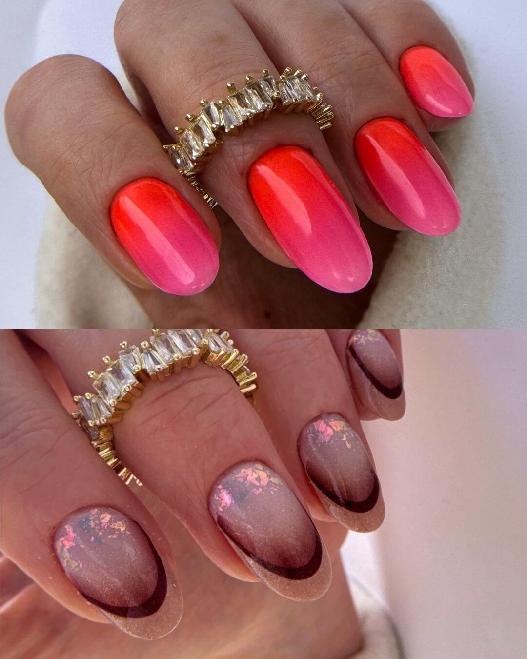 Ombre na długich i krótkich paznokciach.