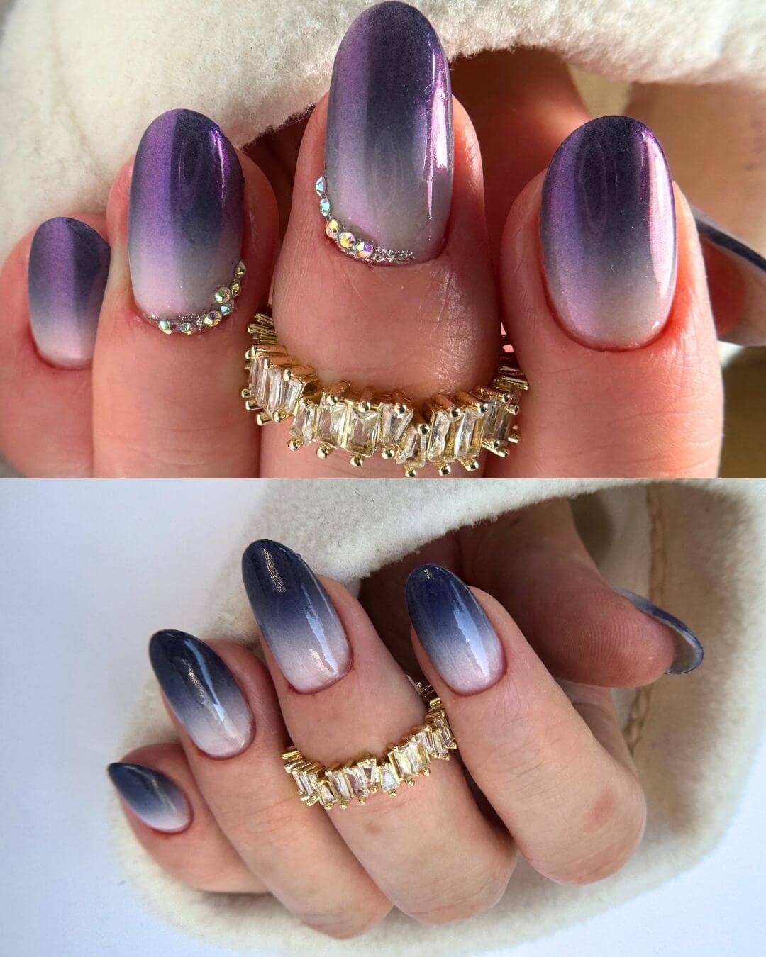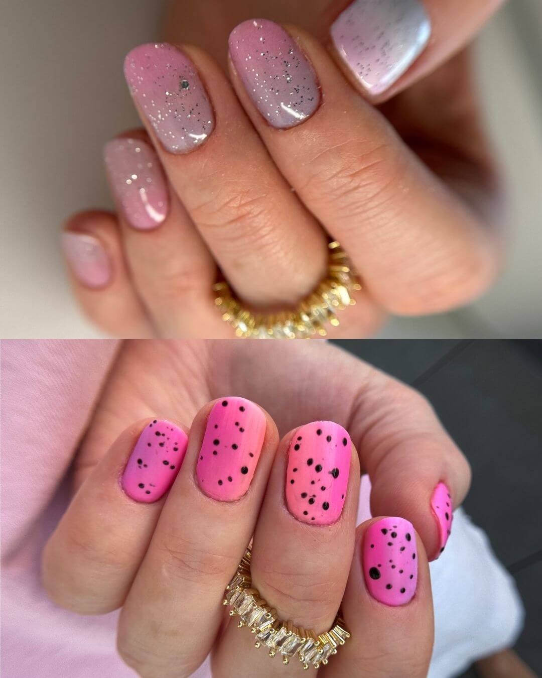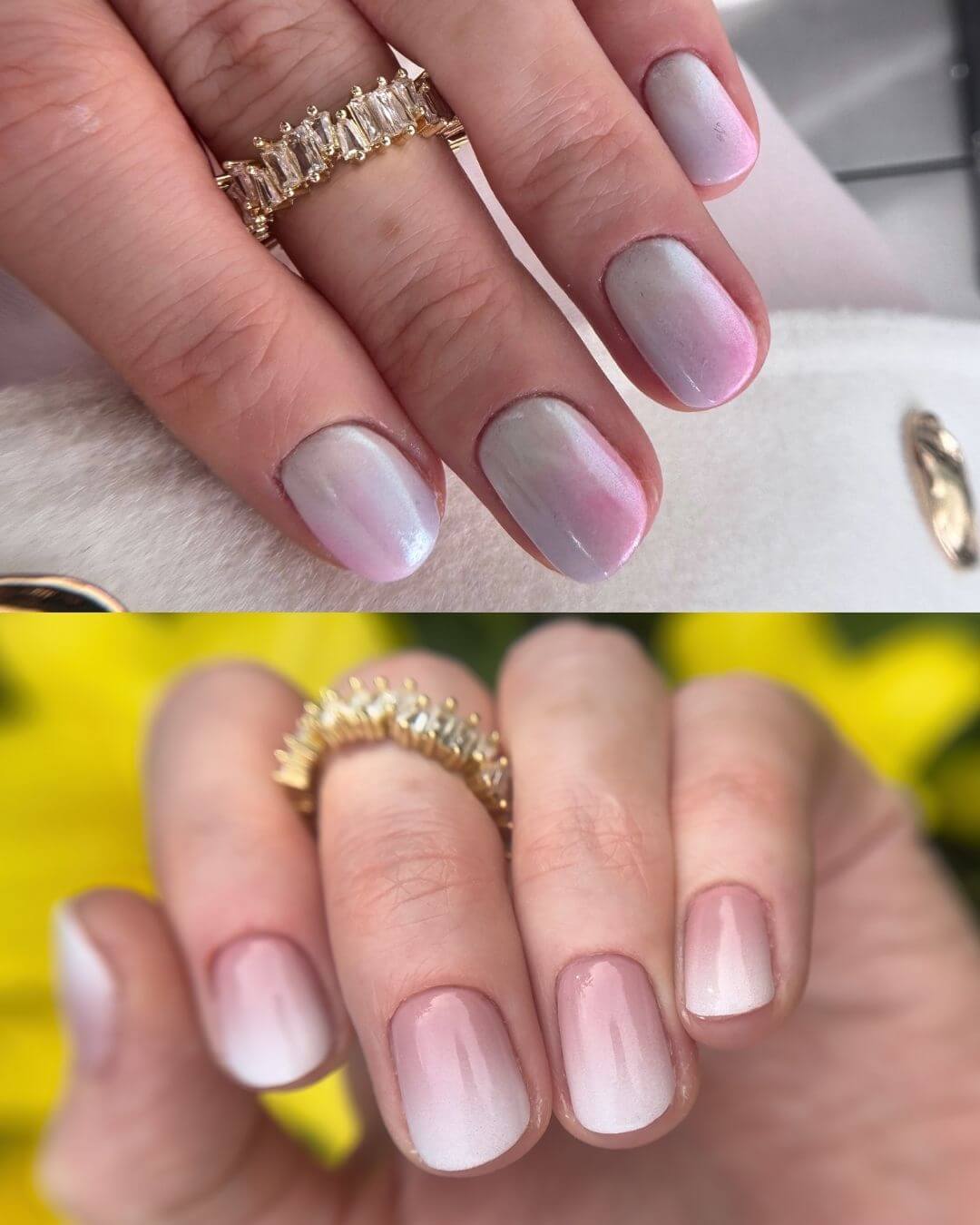 Ombre na długich i krótkich paznokciach.