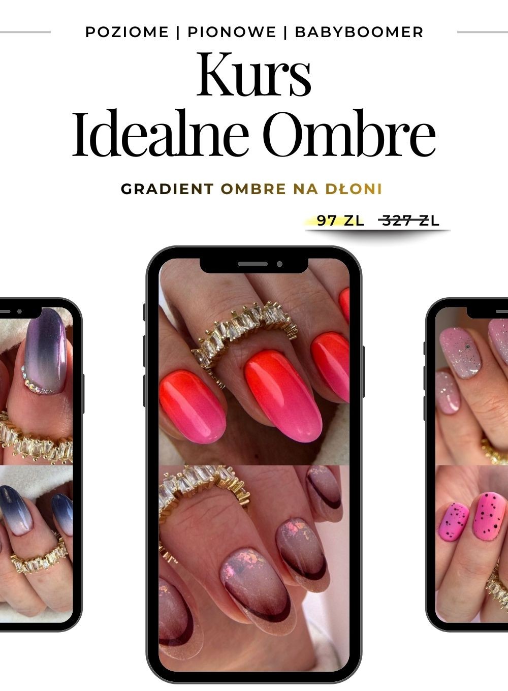 Kurs ombre online zapewnia Ci nie tylko solidne podstawy w sztuce zdobienia paznokci, metodą ombre i babyboomer + eleganckie detale.