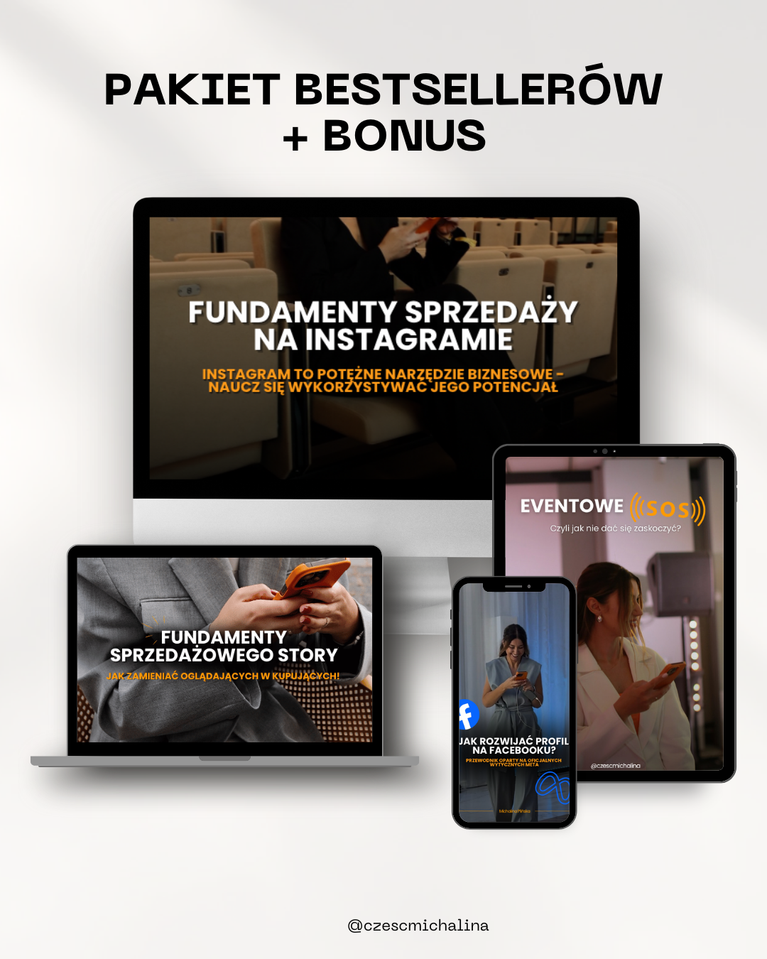 Oszczędzasz i jednocześnie zyskujesz kompletny system, który wyniesie Twoją sprzedaż na Instagramie o poziom (albo kilka poziomów!) wyżej.