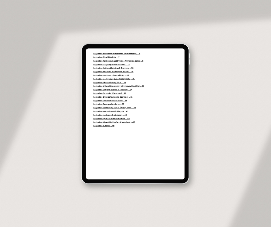 Odkryj niezwykłe historie i magię ukrytą w sercu Ziemi Kłodzkiej! E-book "Magiczne legendy. Ziemia Kłodzka" to podróż pełna tajemnic, niezwykłych postaci i legend, które ożywią wyobraźnię każdego czytelnika.