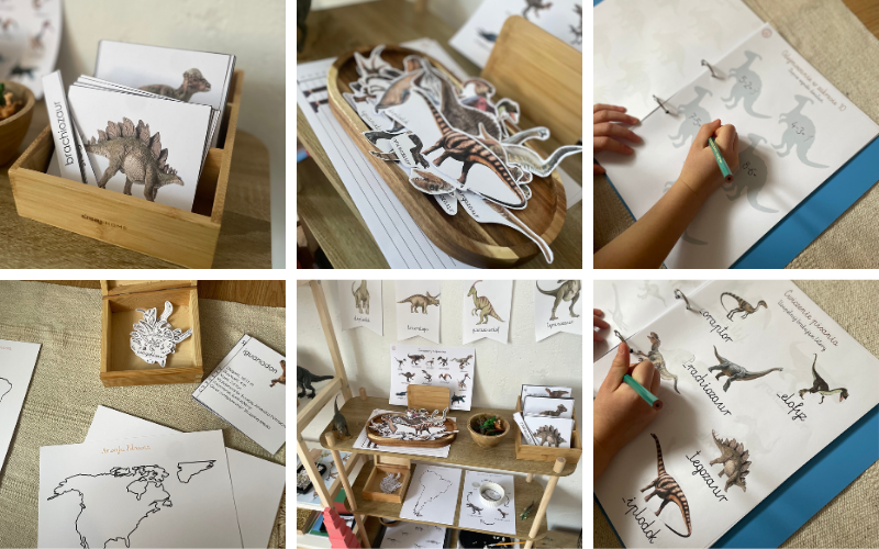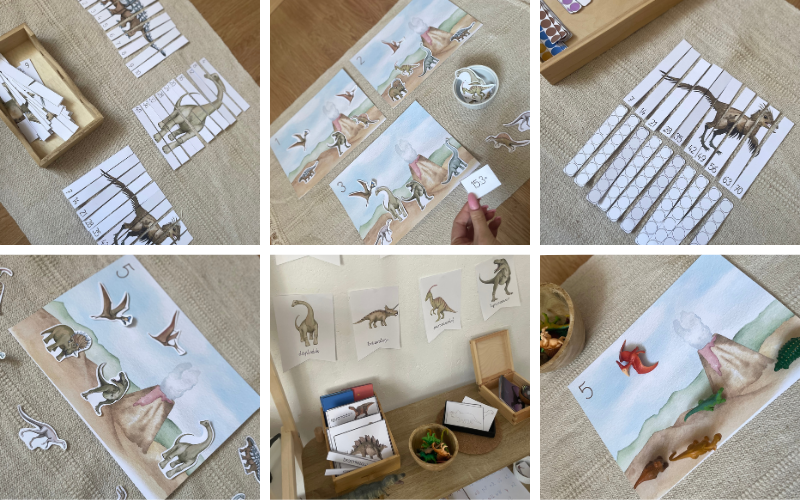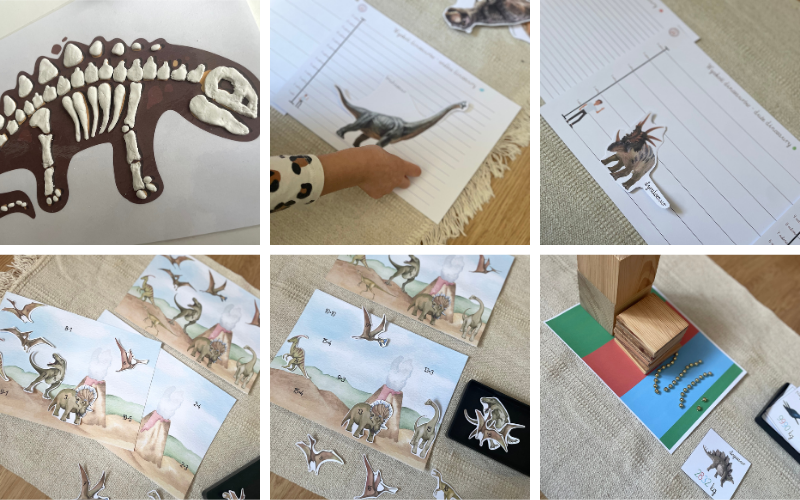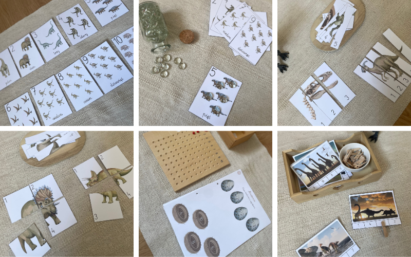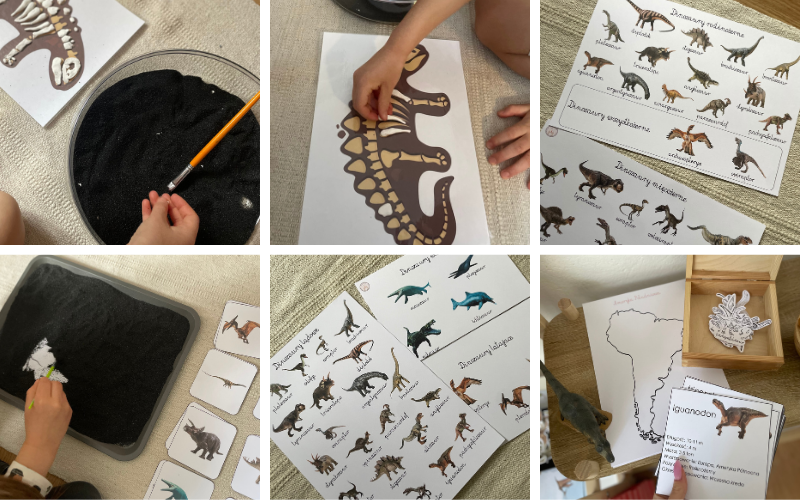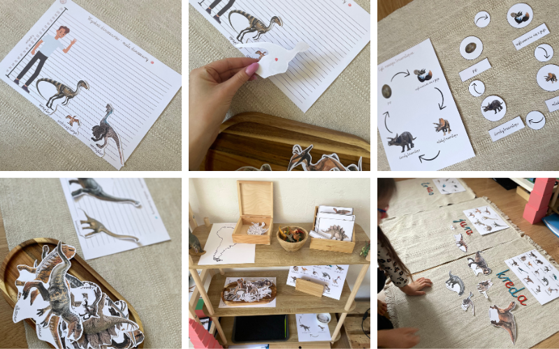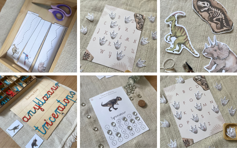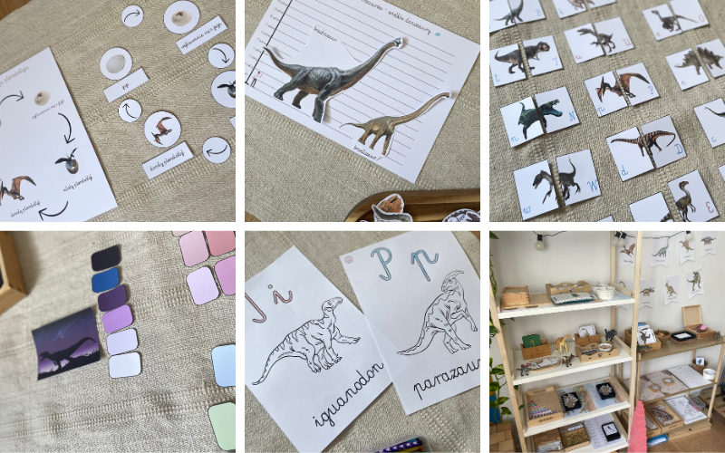 Pakiet Dinozaury Montessori to kompletny zestaw kart pracy i pomocy edukacyjnych, który rozwija umiejętności językowe, matematyczne, logiczne i wiedzę o świecie. Idealny do nauki przez zabawę – w domu, przedszkolu czy edukacji domowej.