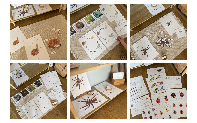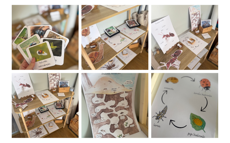Karty z mini owadami do obserwacji przez lupę