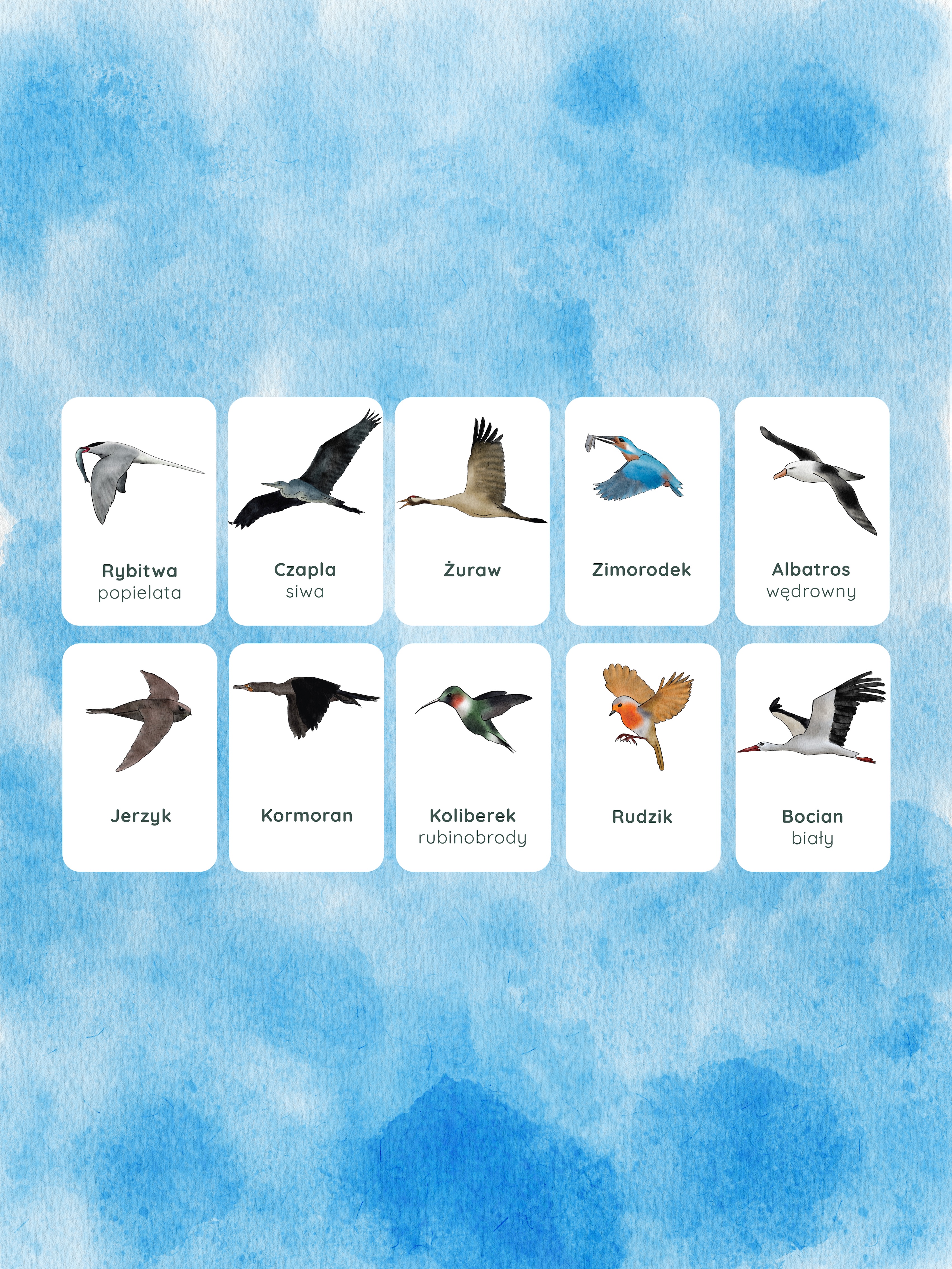 Każdy z 10 ptaków z naszego zestawu posiada supermoce, które pomagają przetrwać im długie wędrówki. Karty superbohaterów to potężna dawka wiedzy połączona z atrakcyjną dla dzieci formą prezentacji. Dodatkowo w zestawie: krzyżówka, 4 plansze do kodowania tras wędrówek oraz dwa zestawy kart memory.