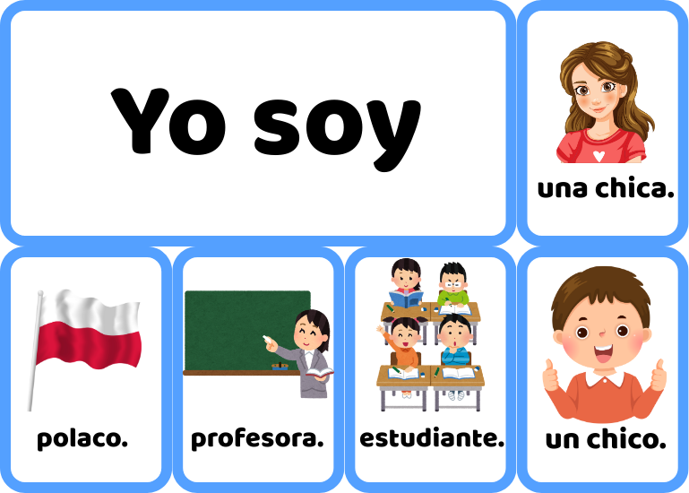 ✨ Interaktywny materiał do nauki budowania zdań po hiszpańsku od podstaw.