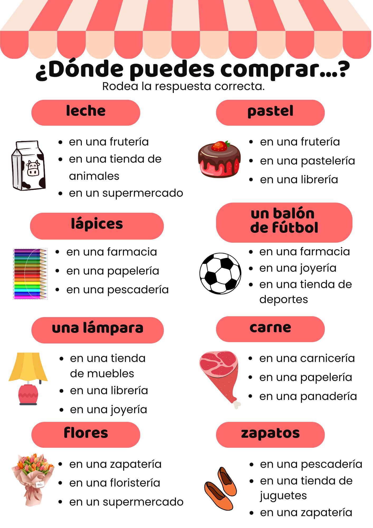 🔹 CZĘŚĆ 1 – Quiz „¿Dónde puedo comprar…?”