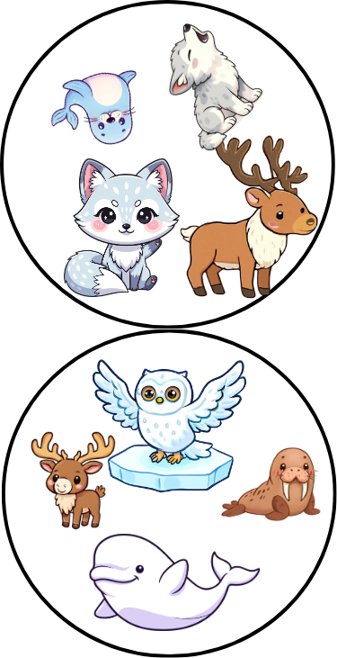 ❄️🐧 Zwierzęta Arktyczne – gra typu Dobble to uniwersalna gra obserwacyjna i refleksowa, oparta na ilustracjach arktycznych zwierząt. Zadaniem graczy jest jak najszybsze odnalezienie wspólnego obrazka na dwóch kartach. ✨ Bez napisów – dzięki temu gra: • sprawdzi się w każdym języku • idealnie nadaje się do nauki słownictwa • jest świetnym narzędziem dla nauczycieli i terapeutów