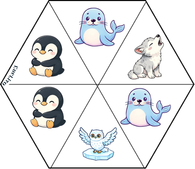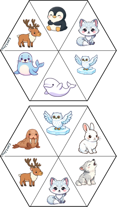 📦 Zestaw zawiera: ✔ 18 sześciokątnych kart ✔ wyraźne ilustracje zwierząt arktycznych ✔ brak napisów – pełna uniwersalność językowa ✔ zalaminowane karty – trwałe i wielokrotnego użytku