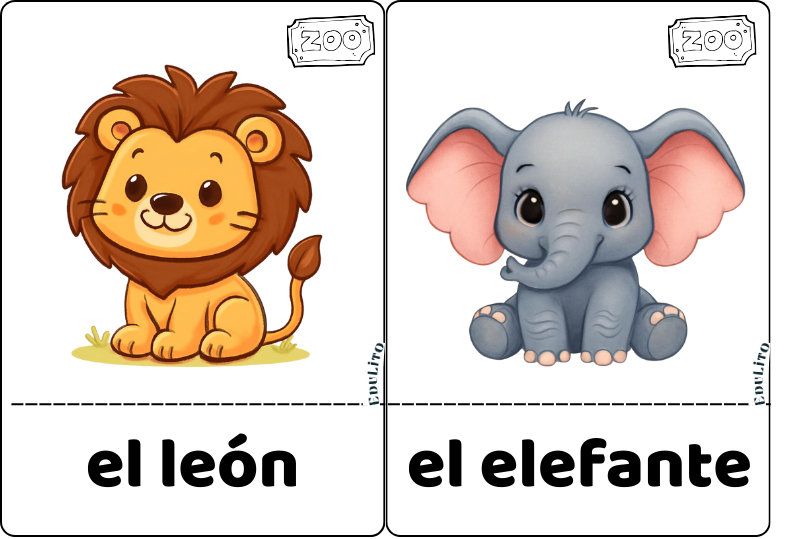 Zwierzęta w ZOO po hiszpańsku fiszki edukacyjne