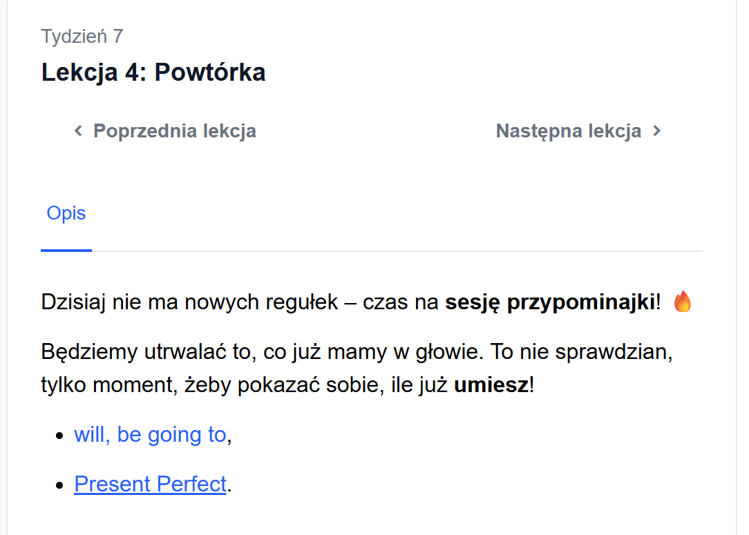 6 dni w tygodniu – krótkie, konkretne lekcje (uczysz się efektywnie).