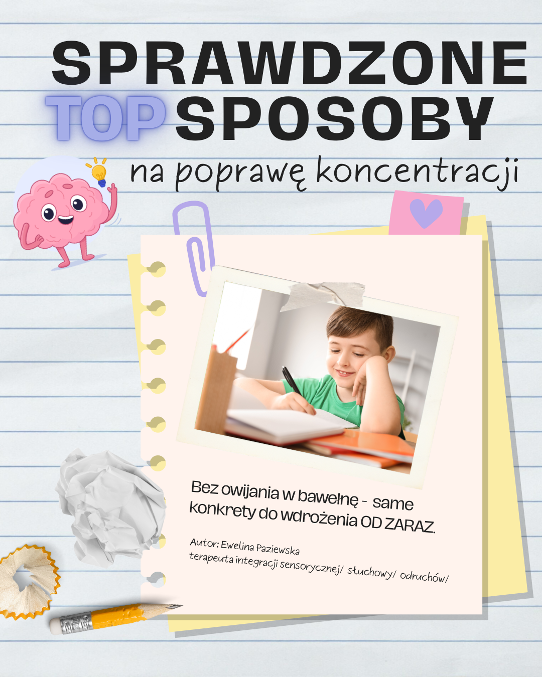 Sprawdzone TOP sposoby na poprawę koncentracji u dzieckaSprawdzone sposoby na poprawę koncentracji u Twojego dziecka. Same konkrety do wdrożenia OD ZARAZ.14,90 zł -