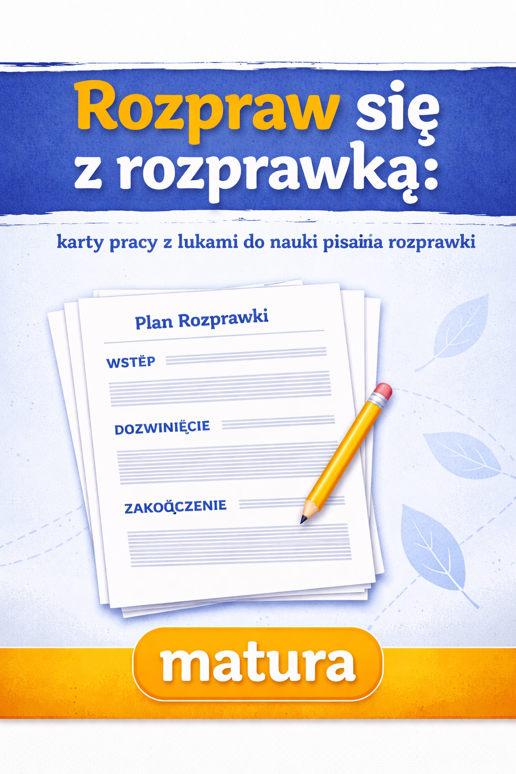 Rozpraw się z rozprawką! Karty pracy do nauki pisania rozprawki z tezą - E83 karty pracy z lukami do uzupełnienia, uczące pisania rozprawki krok po kroku17,00 zł -