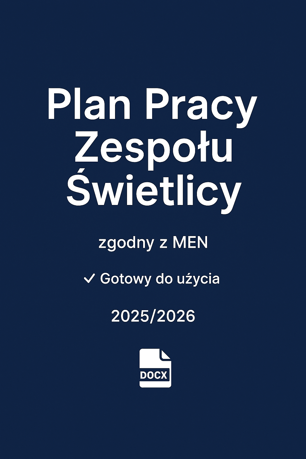Plan Pracy Zespołu Świetlicy - zgodny z MEN 2025/2026Plan pracy świetlicy 2025/2026: MEN, gotowy i edytowalny. Oszczędza czas.15,00 zł -