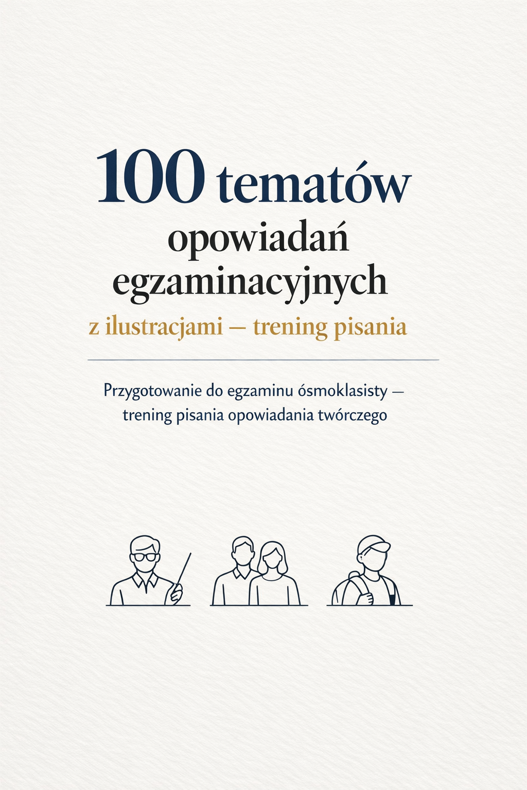 100 tematów opowiadań egzaminacyjnych z ilustracjami – trening pisaniaPrzygotowanie do egzaminu ósmoklasisty - trening pisania opowiadania twórczego17,00 zł -