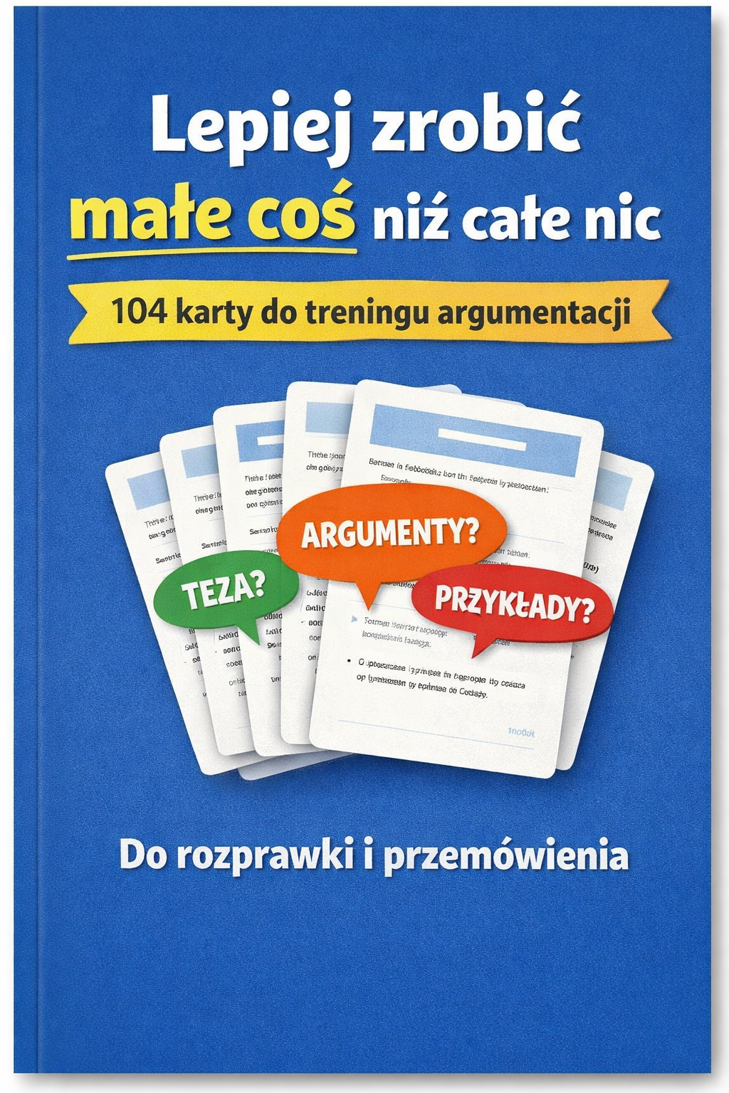 Lepiej zrobić małe coś niż całe nic – 104 karty do treningu argumentacji - egzamin ósmoklasistyidealne do rozprawki i przemówienia17,00 zł -