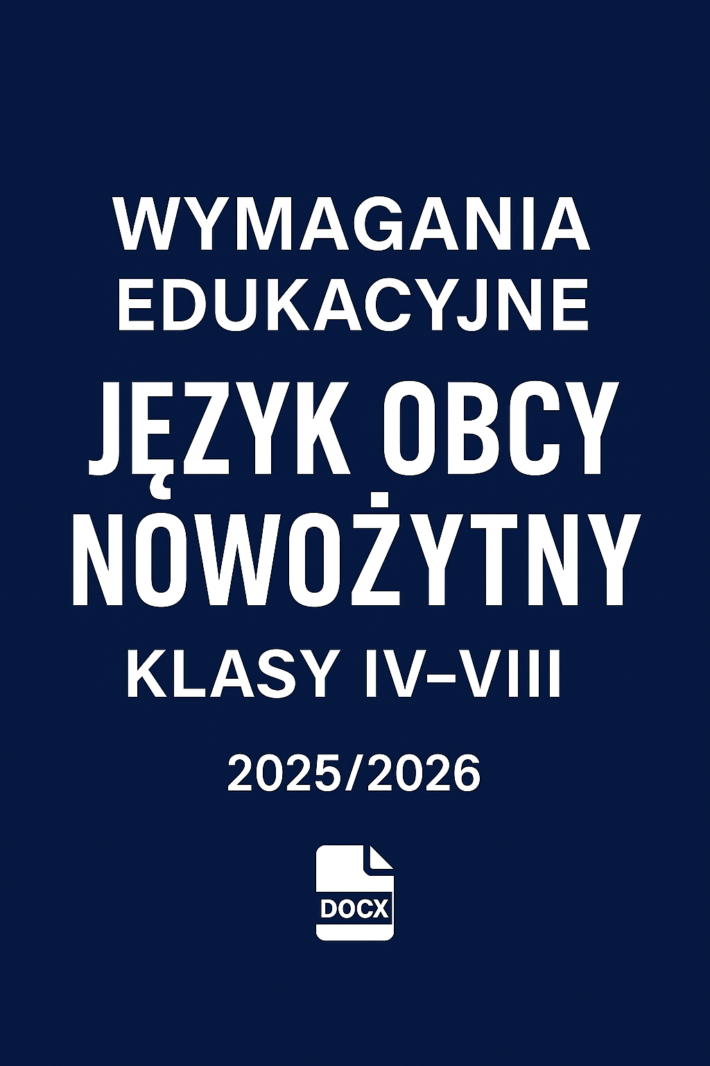 Gotowe wymagania edukacyjne - język obcy nowożytny dla klas IV-VIII 2025/26Wymagania edukacyjne z języka obcego IV–VIII 2025/26 – jasne, zgodne z podstawą MEN.25,00 zł -