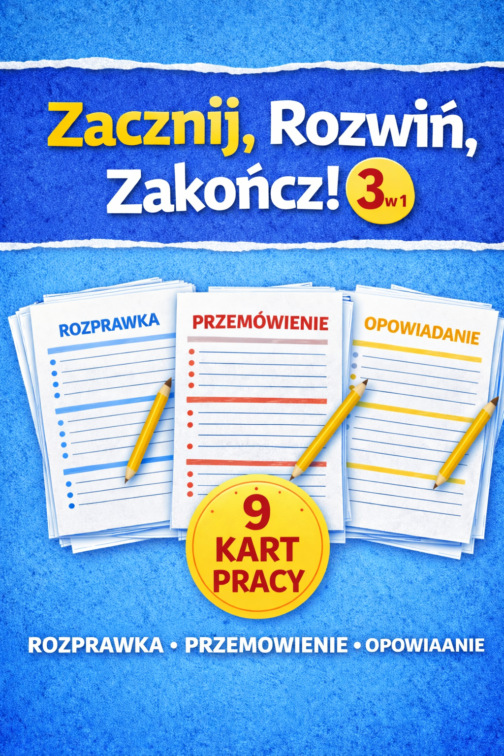 Pakiet 3 w 1 - wypracowania z lukami do uzupełniania - E89 kart wspierających naukę pisania rozprawki, przemówienia i opowiadania twórczego46,99 zł -