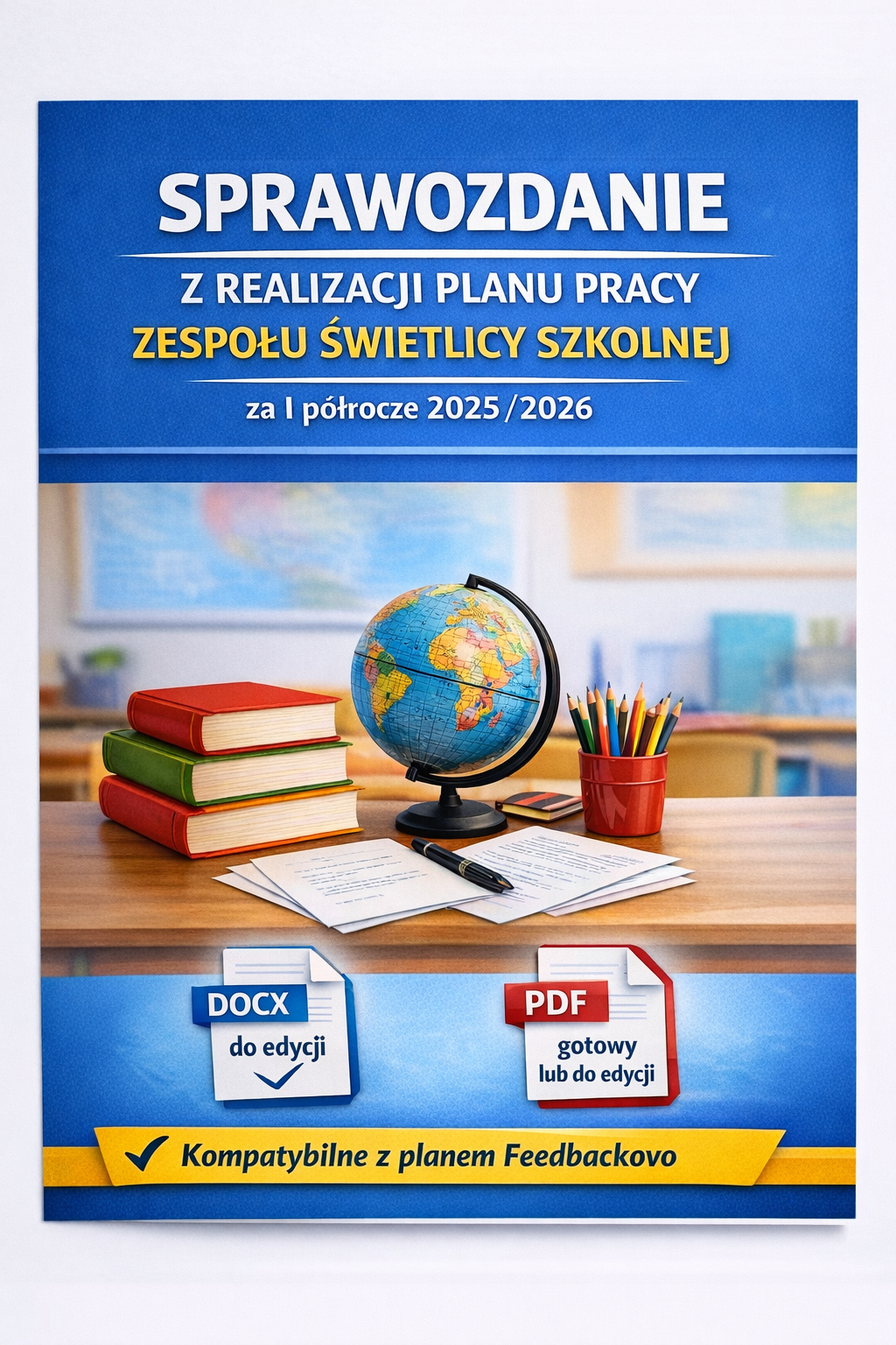 Gotowe sprawozdanie półroczne pracy zespołu świetlicy szkolnej – zgodne z priorytetami MENGotowe sprawozdanie świetlicy zgodne z priorytetami MEN, kompatybilne z planem Feedbackovo.7,00 zł -
