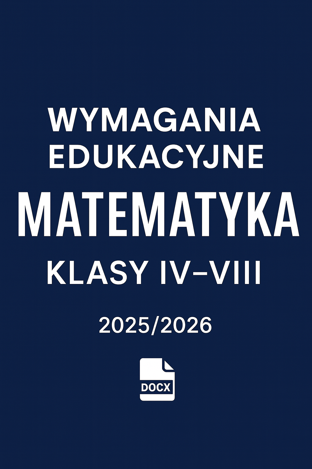 Gotowe wymagania edukacyjne z matematyki dla klas IV-VIII, 2025/26Wymagania edukacyjne z matematyki dla klas IV–VIII 2025/26 – jasno, nowocześnie, przejrzyście!25,00 zł -