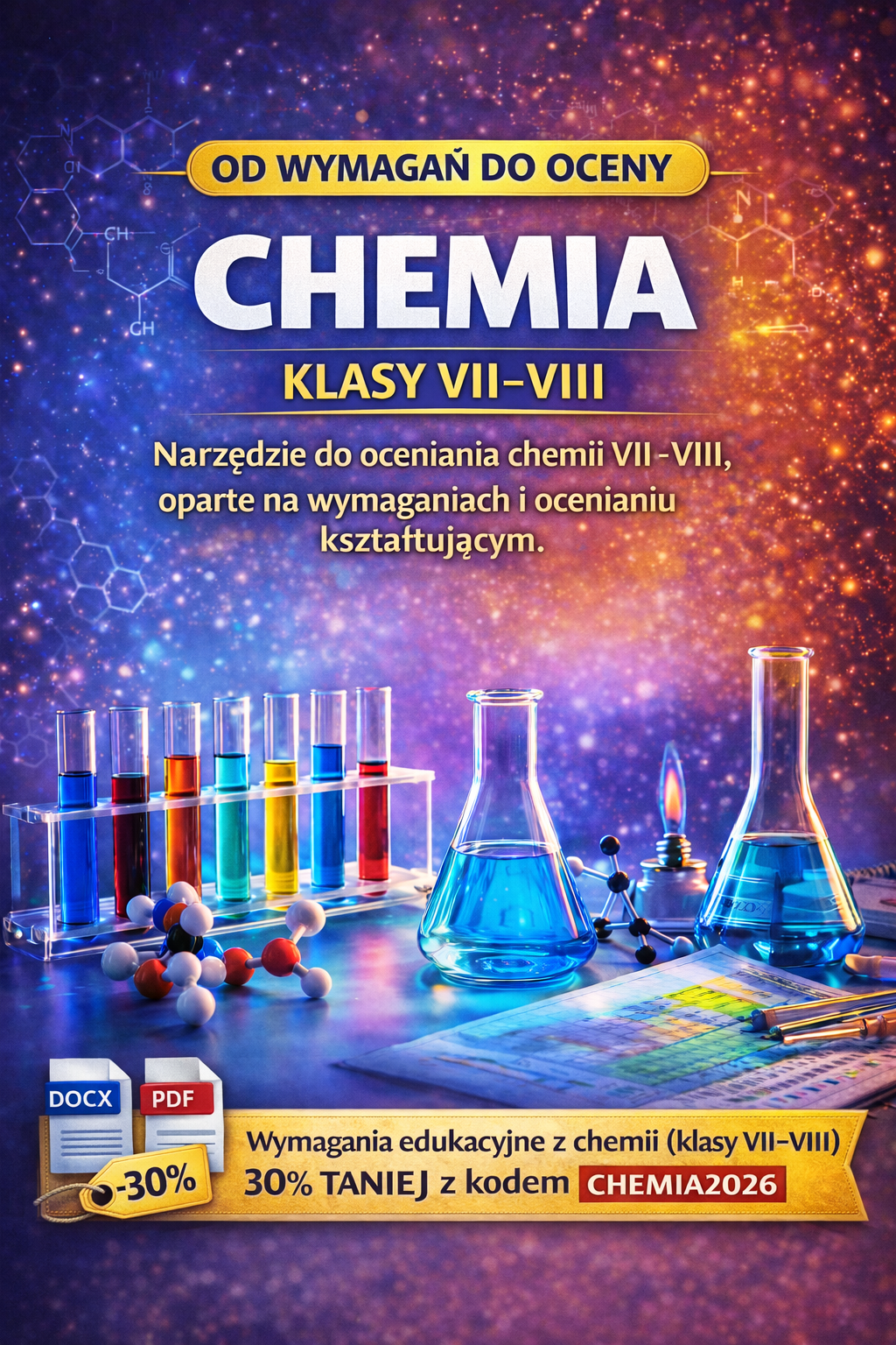 Gotowe wymagania edukacyjne z chemii dla klasy VII i VIII 2025/2026Wymagania zapisane w języku zrozumiałym dla ucznia - zgodnie z priorytetami MEN 2025/26, edytowalne.25,00 zł -