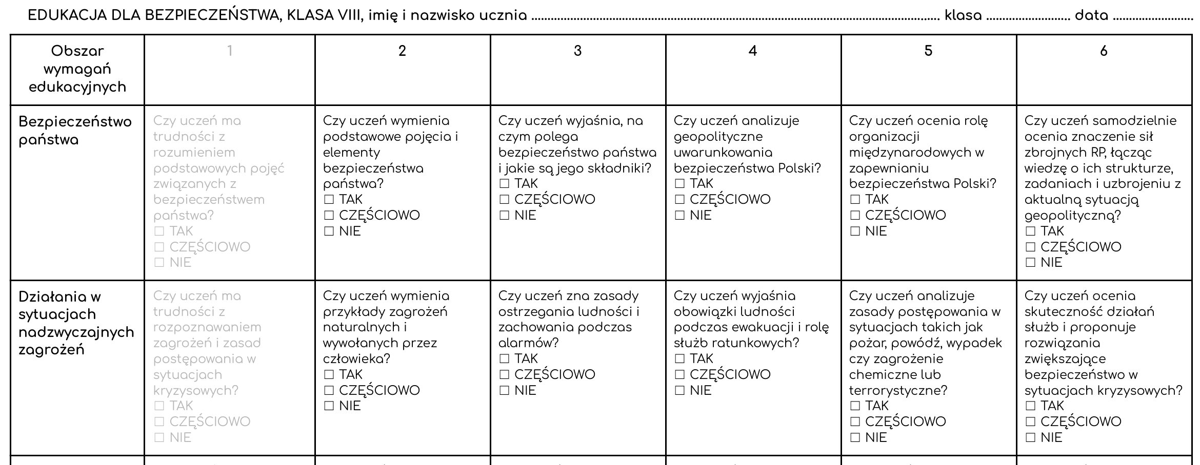 Od wymagań do oceny – edukacja dla bezpieczeństwa (klasa VIII)