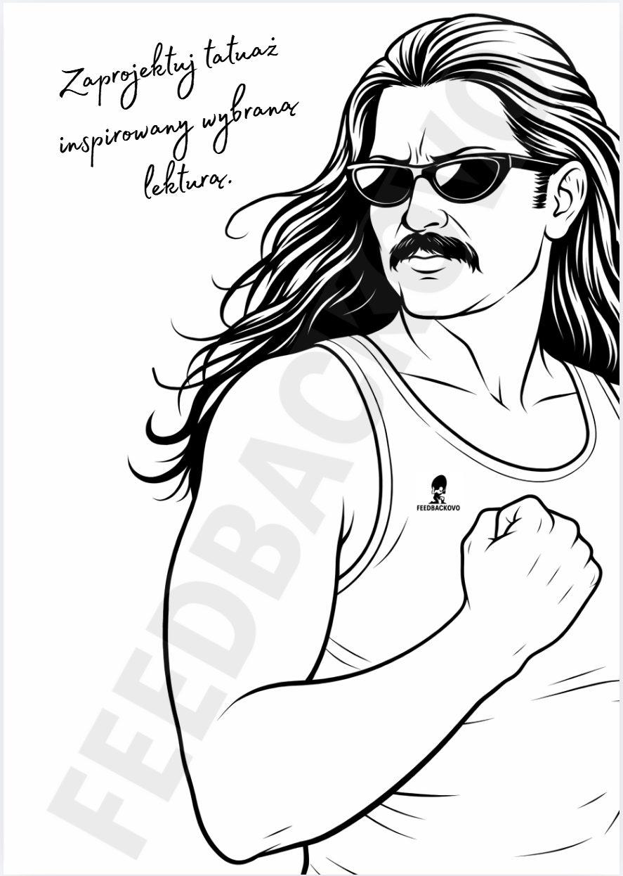 Uczeń nie tylko tworzy własny projekt tatuażu inspirowany wybraną lekturą, ale również pracuje z gotowymi wzorami niczym z katalogu. Jego zadaniem jest wybranie tych elementów graficznych, które najlepiej pasują do konkretnego utworu, a następnie ich interpretacja oraz uzasadnienie swojego wyboru w formie argumentacji.