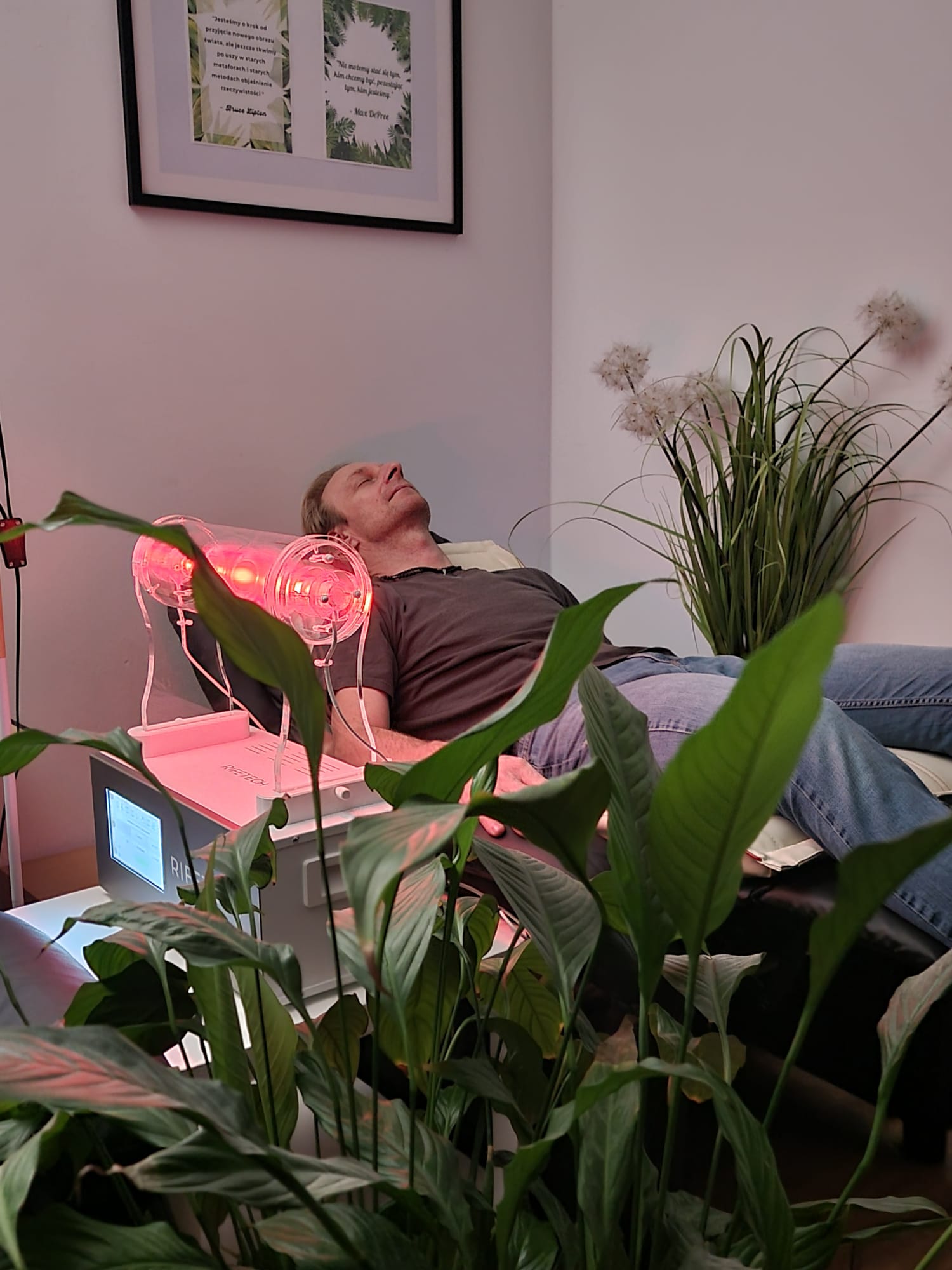 Podczas NeuroRelaksu wykorzystywany jest nowoczesny sprzęt terapeutyczny, który w łagodny i nieinwazyjny sposób wspiera regulację układu nerwowego. Działanie zabiegu sprzyja obniżeniu poziomu napięcia, rozluźnieniu mięśni oraz przejściu organizmu w stan głębokiego odpoczynku. W efekcie ciało otrzymuje sygnał bezpieczeństwa, co ułatwia wyciszenie, regenerację oraz odzyskanie równowagi po długotrwałym stresie.