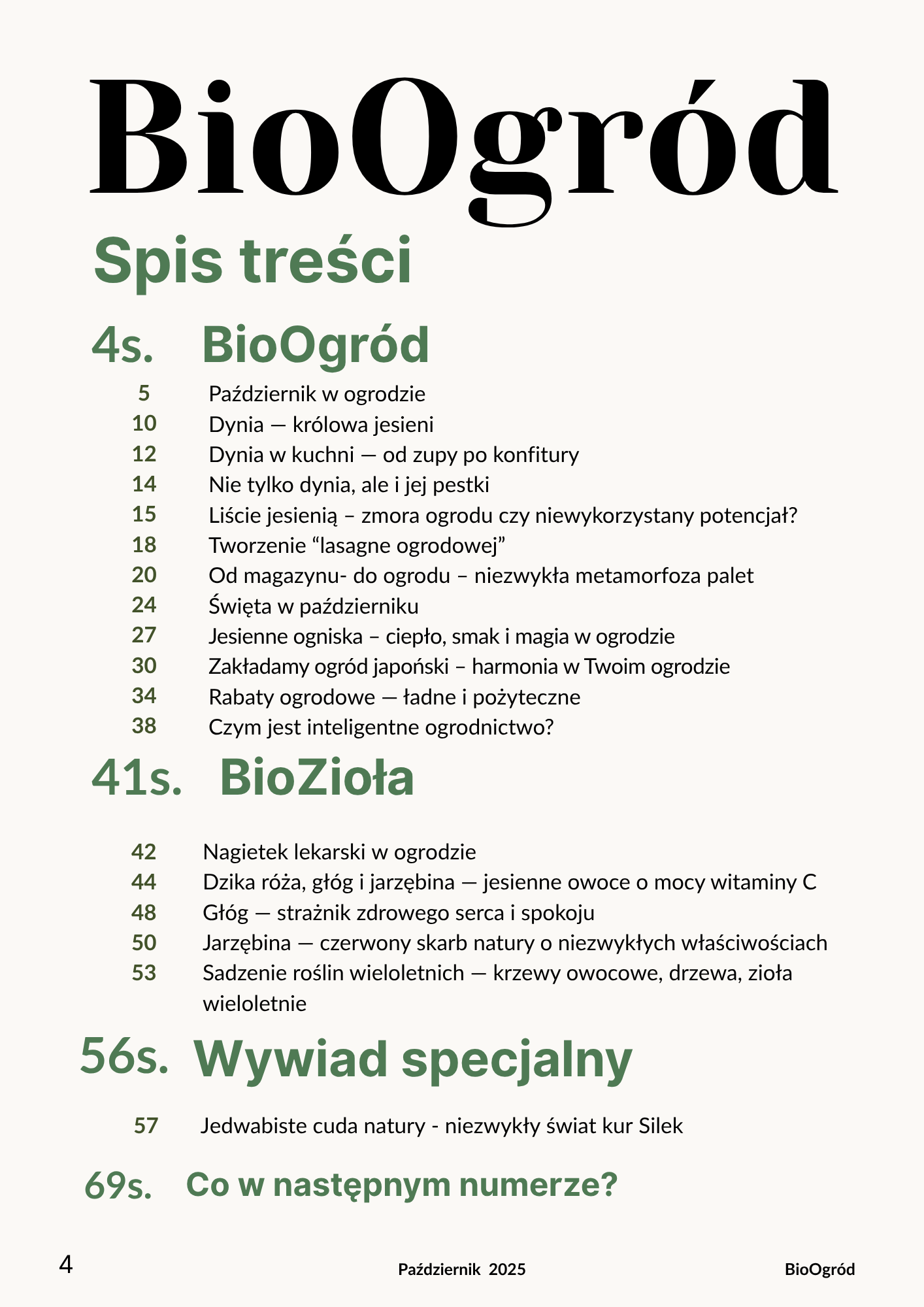 W najnowszym numerze BioOgrodu odkryjesz, jak wykorzystać bogactwo jesieni w ogrodzie, kuchni i domowej apteczce. To wydanie pełne jest inspiracji dla miłośników natury, ekologii i pięknych ogrodów.