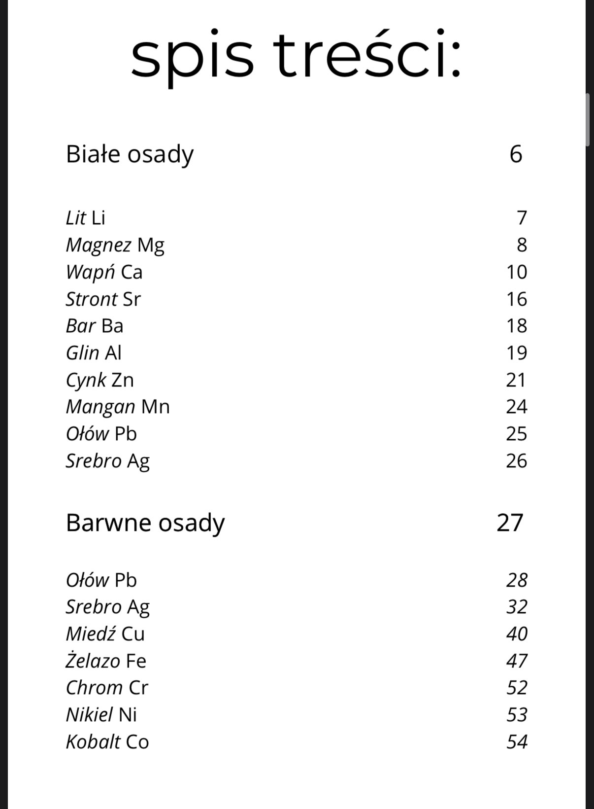 W tej części skupiamy się głównie na reakcjach strąceniowych chemii nieorganicznej.