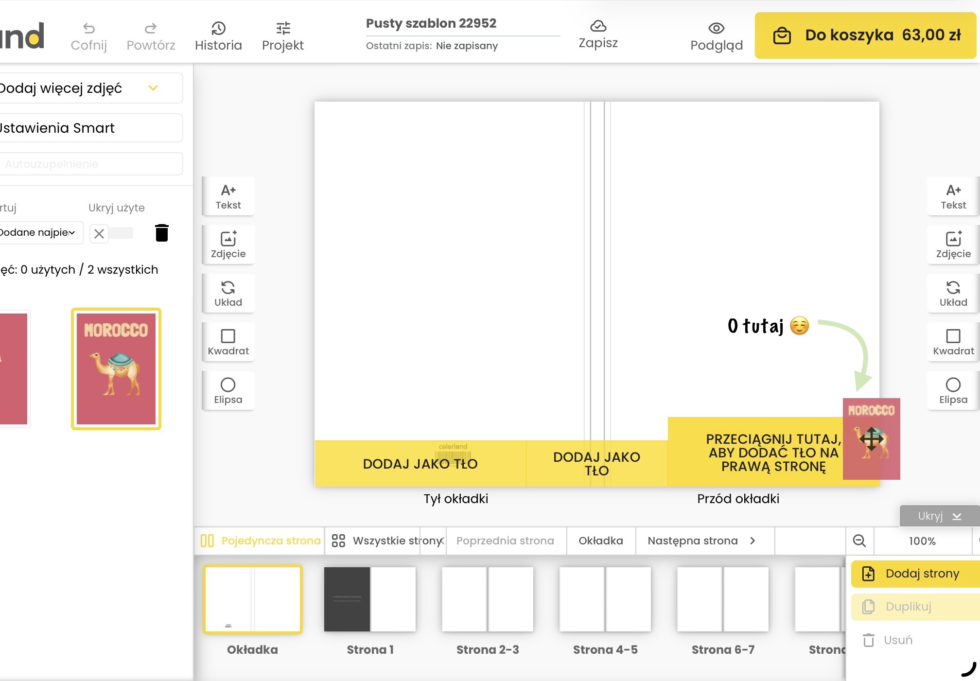 Otwórz kreator fotoksiążki na komputerze i dodaj swoje zdjęcia oraz zakupione grafiki.