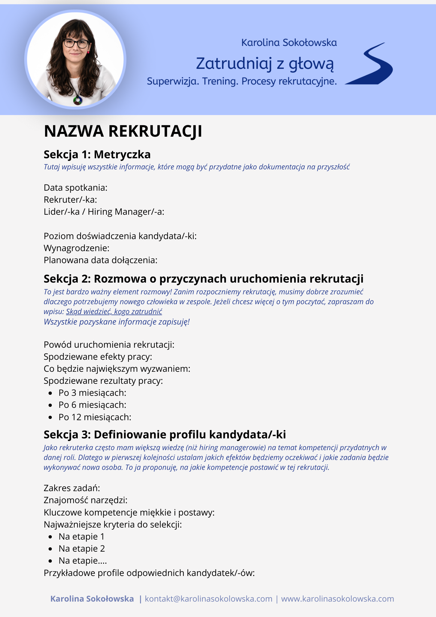 DarmowyJak rozpocząć rekrutację? Lista pytań na spotkanie z hiring managerem.Wyczerpująca lista pytań, na które trzeba odpowiedzieć, zanim wystartujemy z rekrutacją -