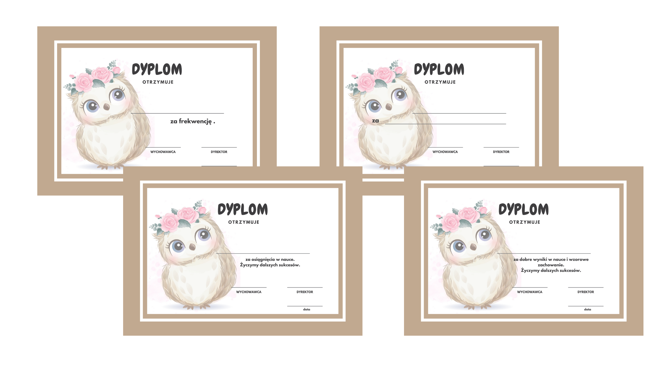Dyplomy zestaw 1- zawiera cztery wzory dyplomów: