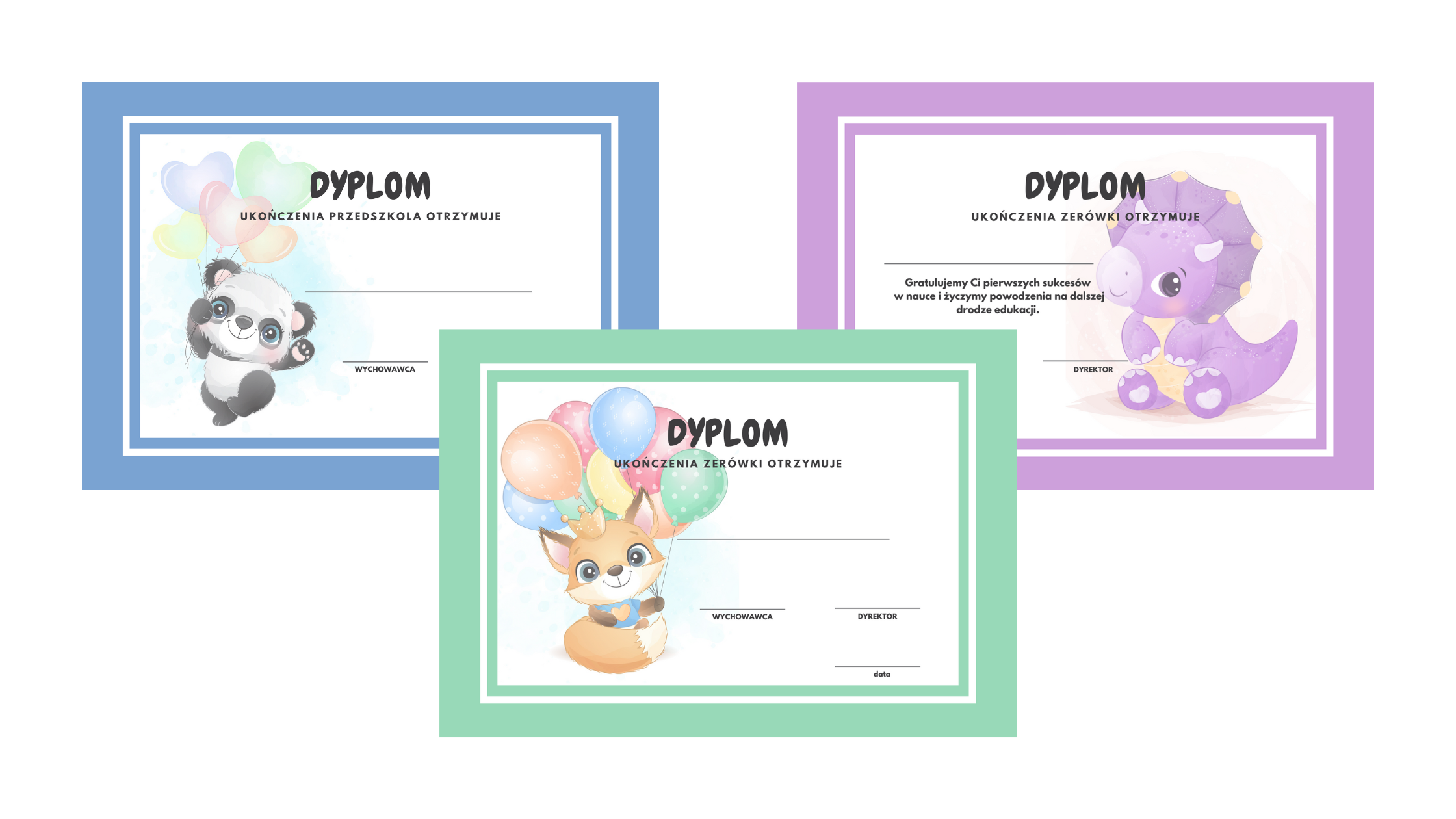 Dyplomy zestaw 2- zawiera trzy wzory dyplomów (12 stron do wydruku):