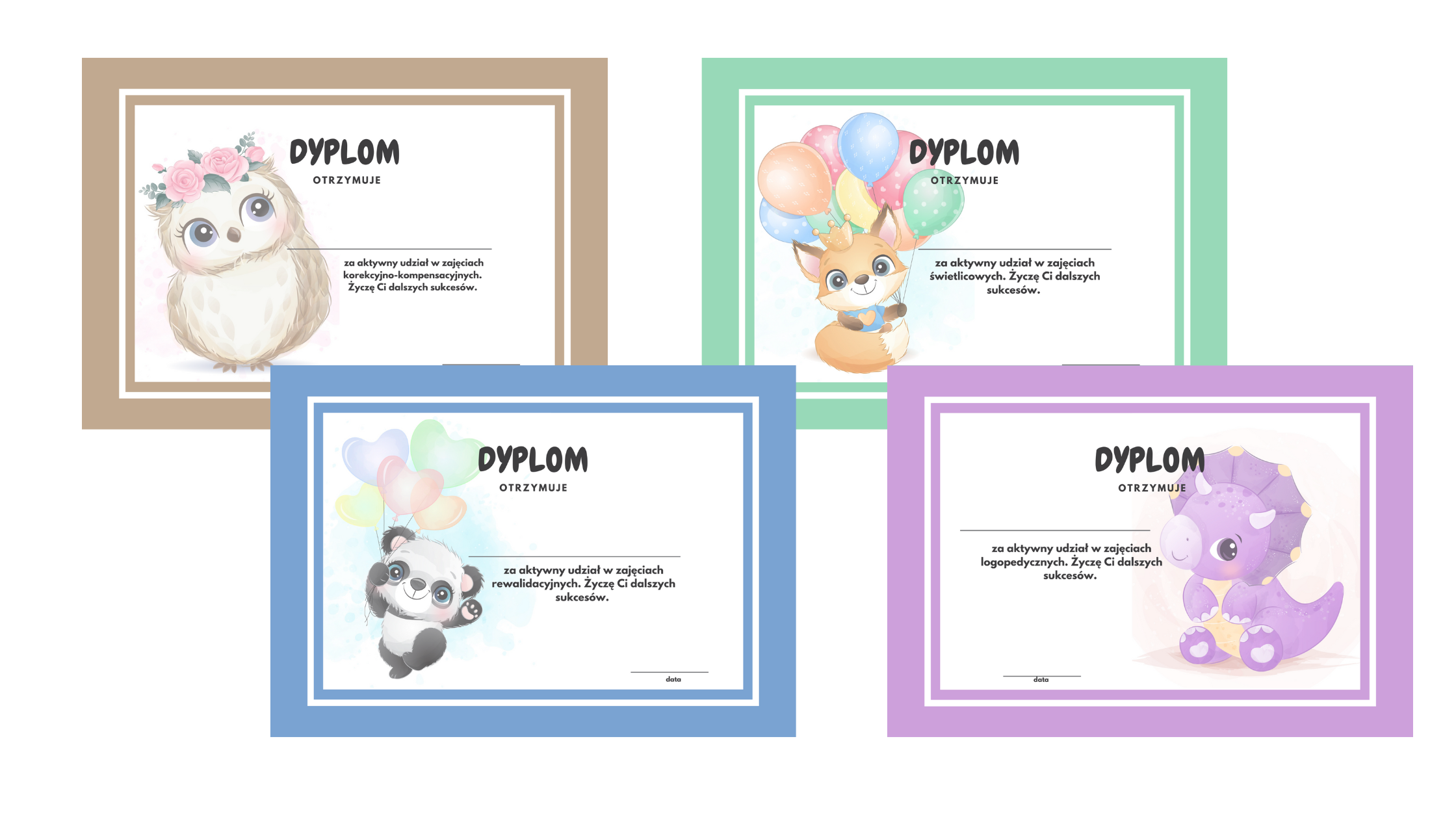 Dyplomy zestaw 3- zawiera cztery wzory dyplomów (16 stron do wydruku) za aktywny udział w zajęciach: