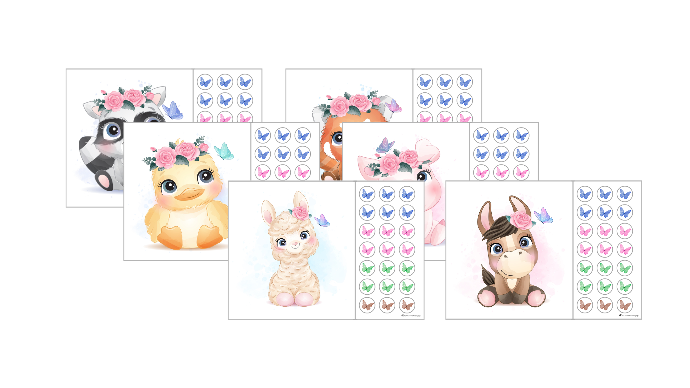6 plansz z ilustracjami zwierząt