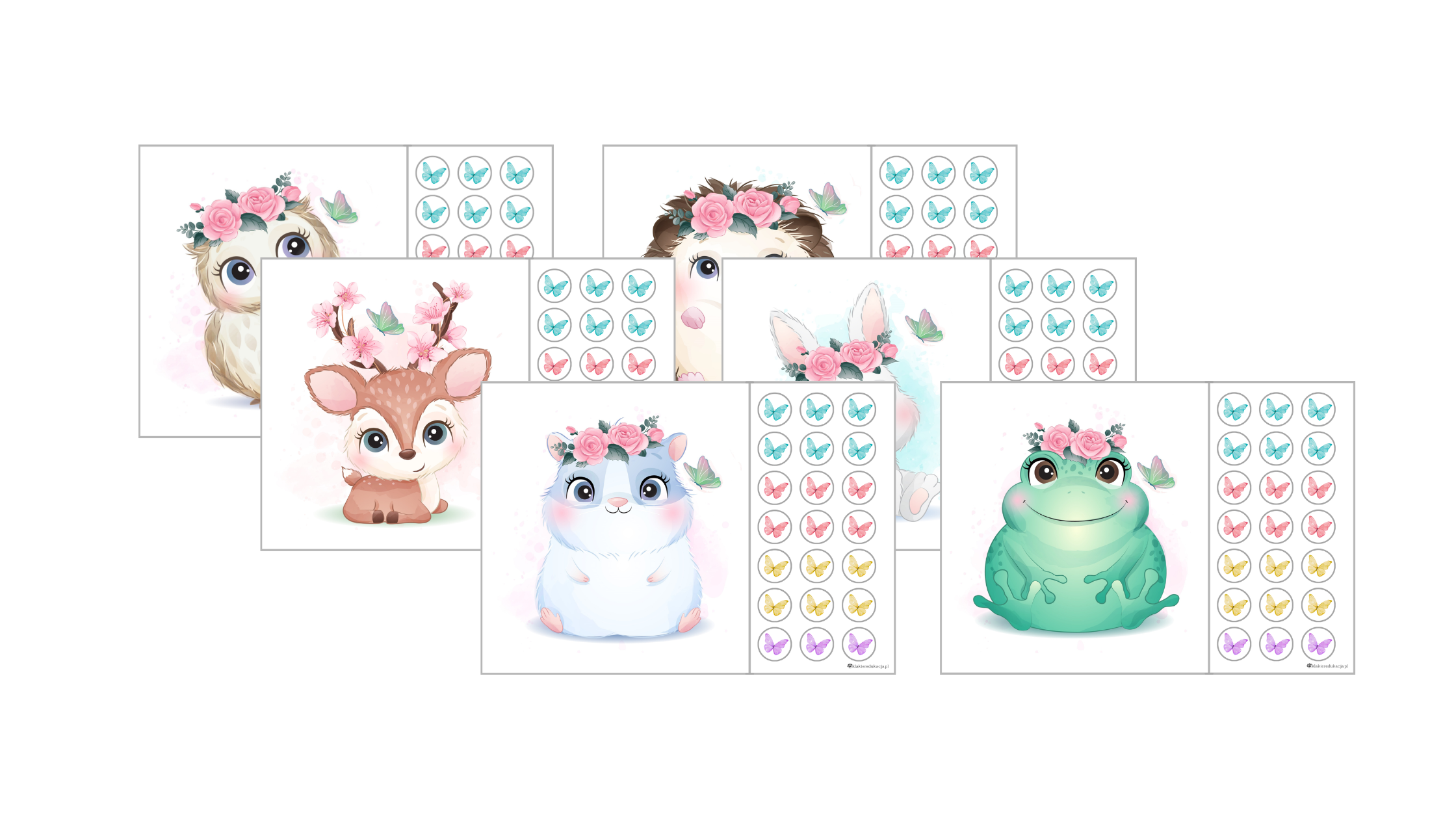 6 plansz z ilustracjami zwierząt