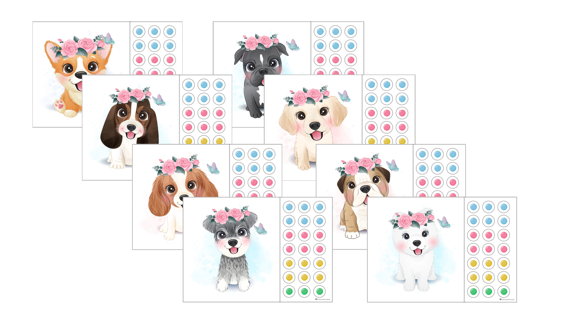8 plansz z ilustracjami psów