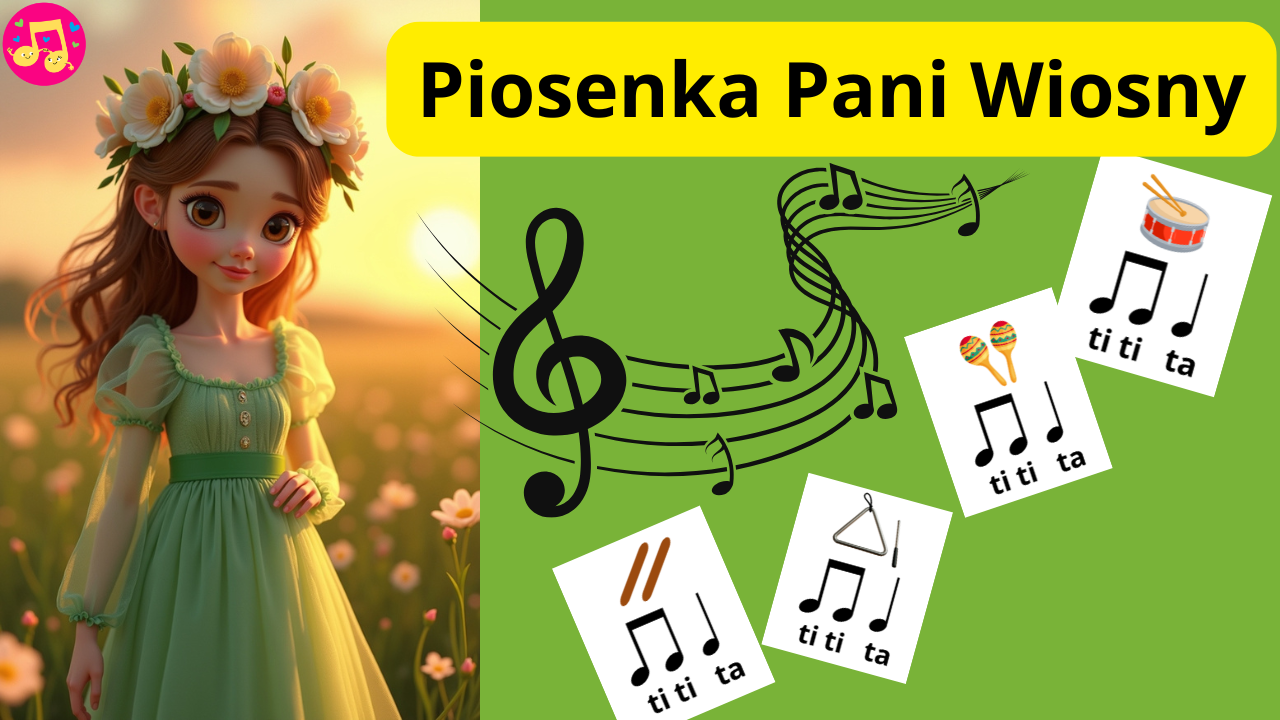 Radosna piosenka o Pani Wiośnie, która łączy śpiewanie, grę na instrumentach i naukę tatizacji w jednej, spójnej aktywności muzycznej. Dzieci nie tylko śpiewają, ale także aktywnie muzykają – odtwarzają rytmy, reagują ruchem i pracują z gotowymi planszami do druku.