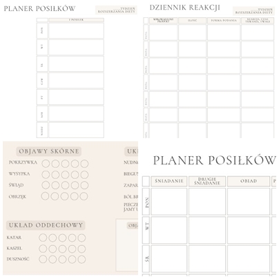 To nie tylko planer posiłków, ale też miejsce na zapiski o nowych produktach, reakcjach alergicznych, prowokacjach i codziennych obserwacjach. Idealny, jeśli w Twojej rodzinie pojawiają się podejrzenia alergii lub po prostu chcesz uważnie i świadomie wprowadzać nowe pokarmy.