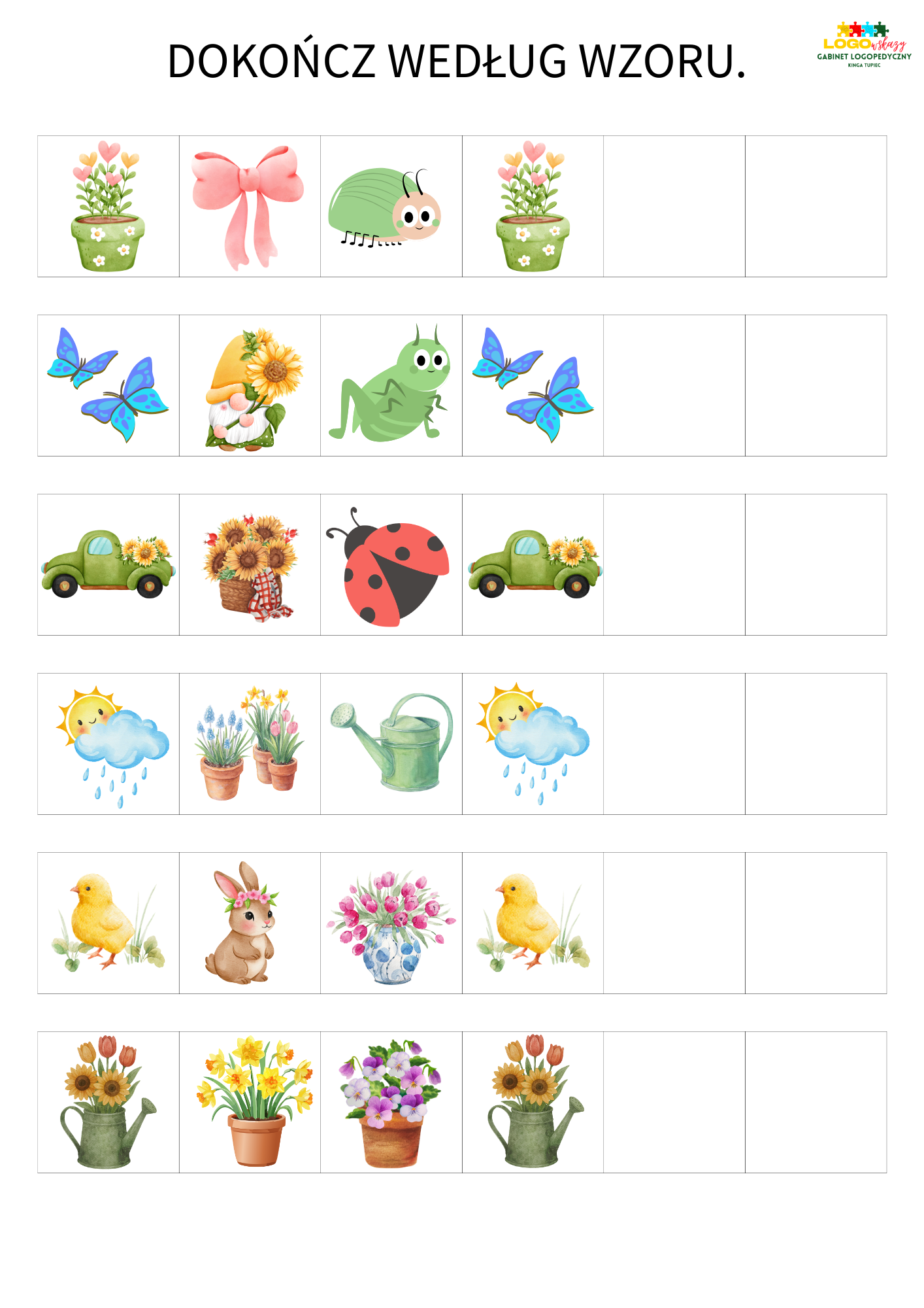 Gotowe do wydruku i pracy od razu po zakupie Wiosenna paka to połączenie terapii z zabawą – bo najlepsze efekty powstają wtedy, gdy dziecko nawet nie zauważa, że się uczy.